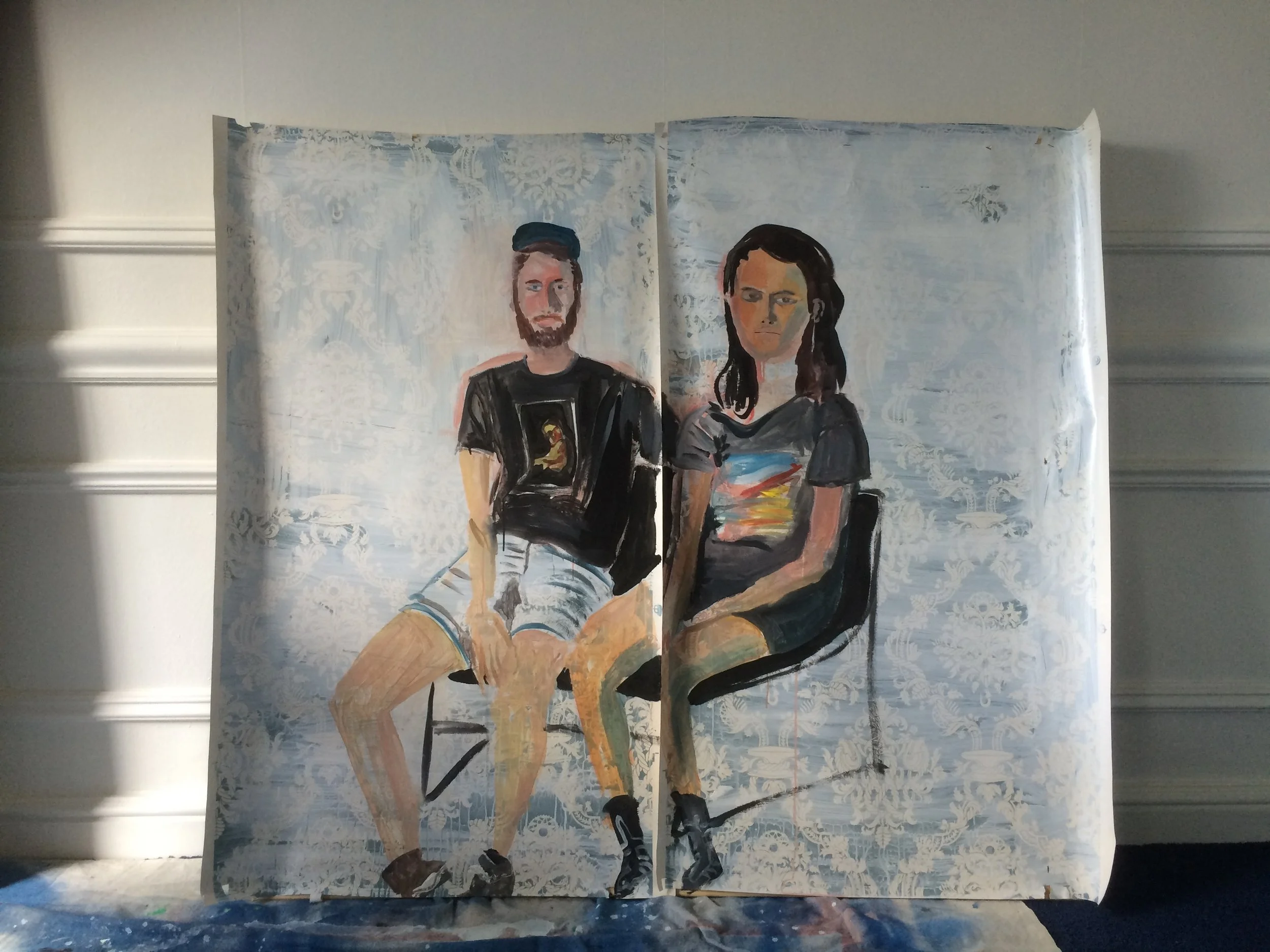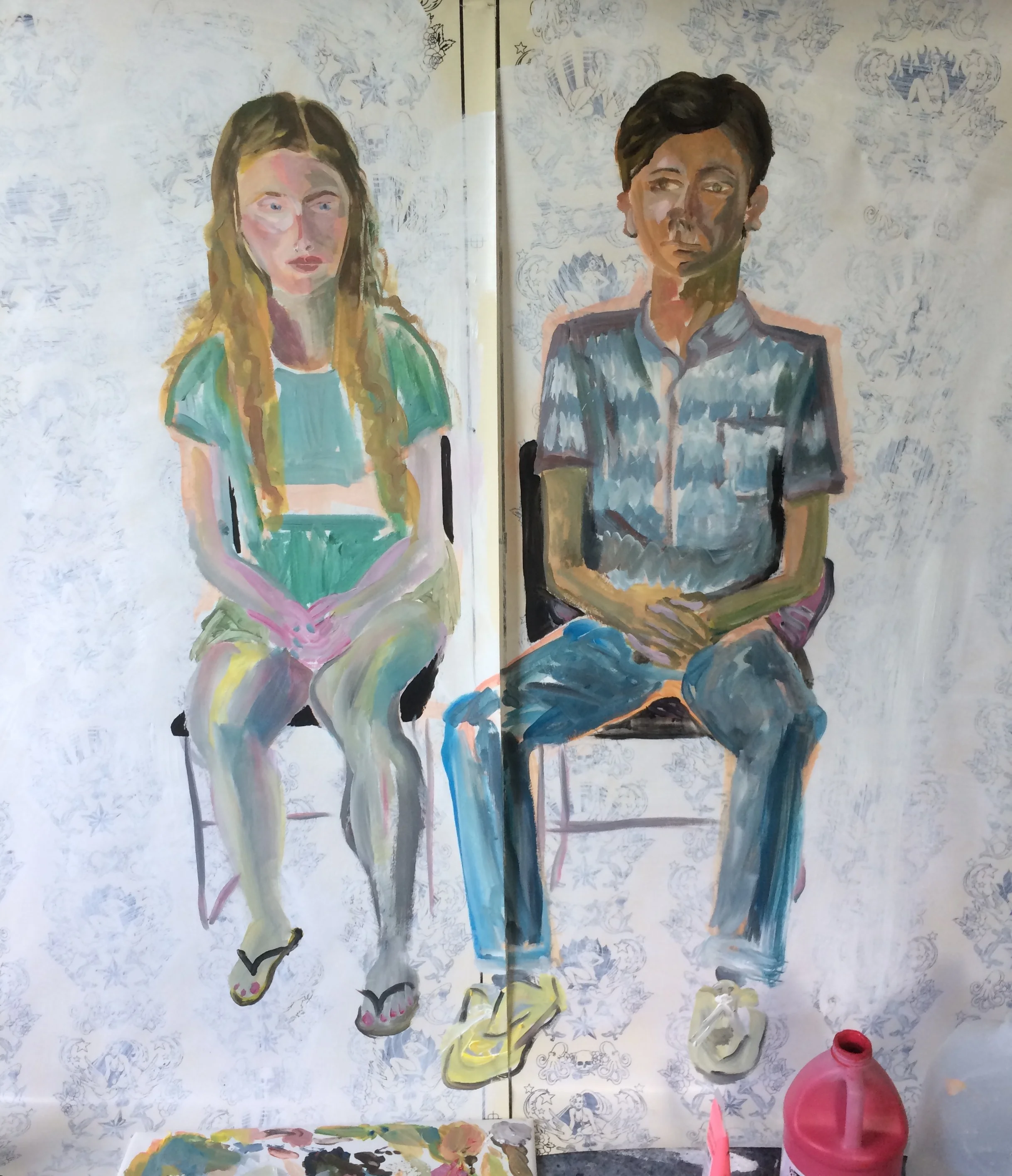 Selected paintings by Brian Rady, acrylics on found wallpaper.